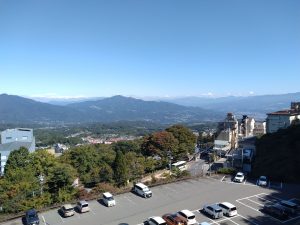 温泉宿に到着!! 窓を開けて紅葉チェック???