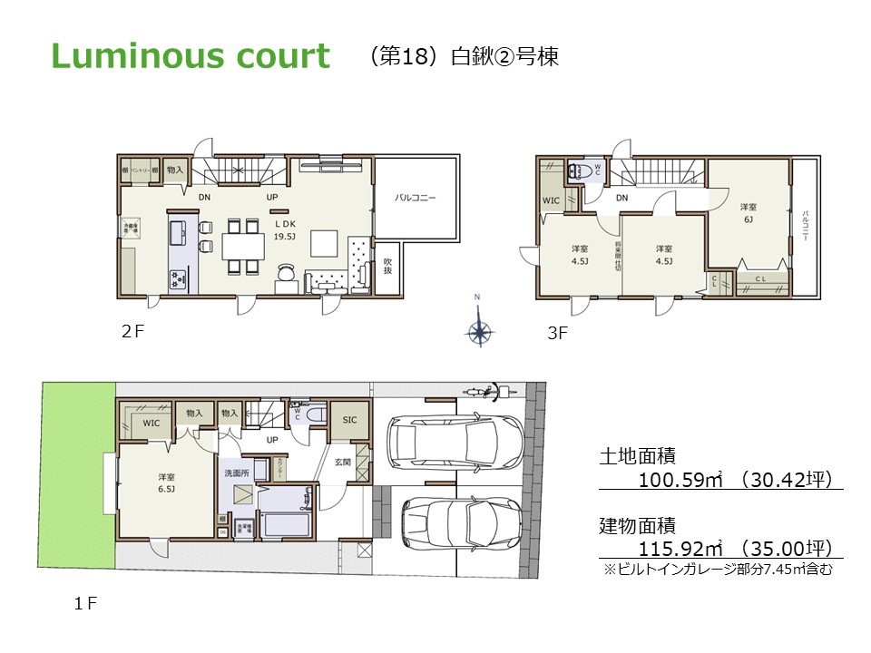| 土地面積 | 100.59㎡~103.07㎡ | 建物面積 | 115.92㎡ |